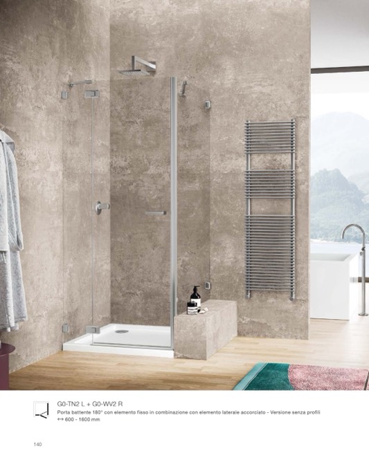 Porta battente 180° con elemento fisso in combinazione con elemento laterale accorciato - Versione senza profili