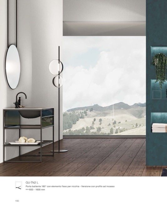 Porta battente 180° con elemento fisso per nicchia - Versione con profilo ad incasso