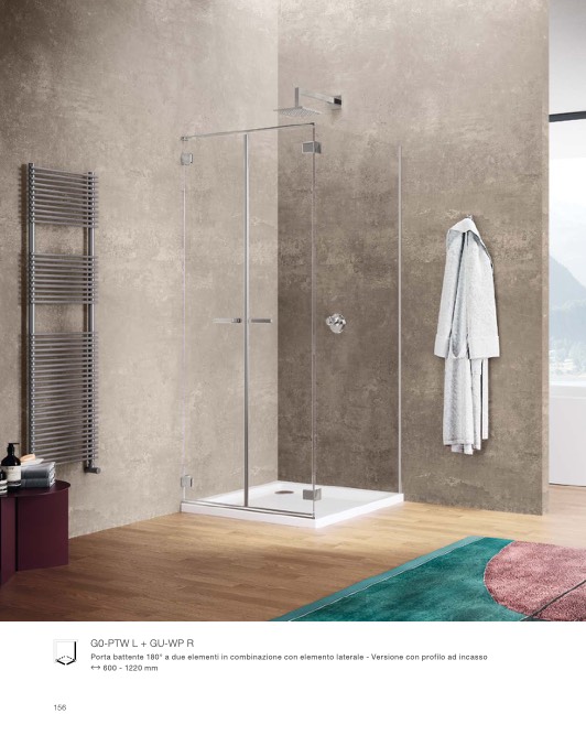 Porta battente 180° a due elementi in combinazione con elemento laterale - Versione con profilo ad incasso