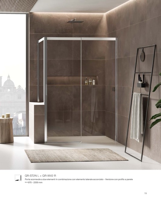 Porta scorrevole a due elementi in combinazione con elemento laterale accorciato - Versione con profilo a parete