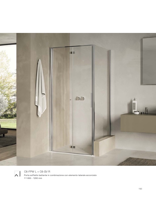 Porta soffietto battente in combinazione con elemento laterale accorciato