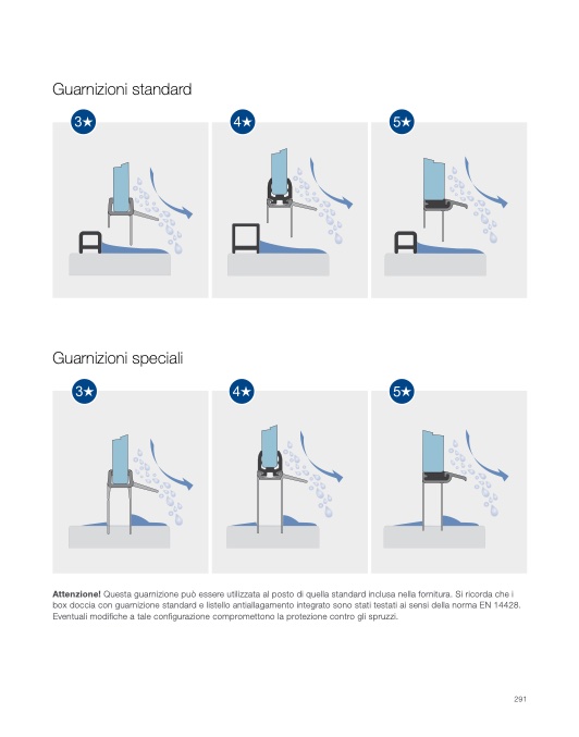 box doccia con guarnizione standard e listello antiallagamento integrato sono stati testati ai sensi della norma EN 14428.