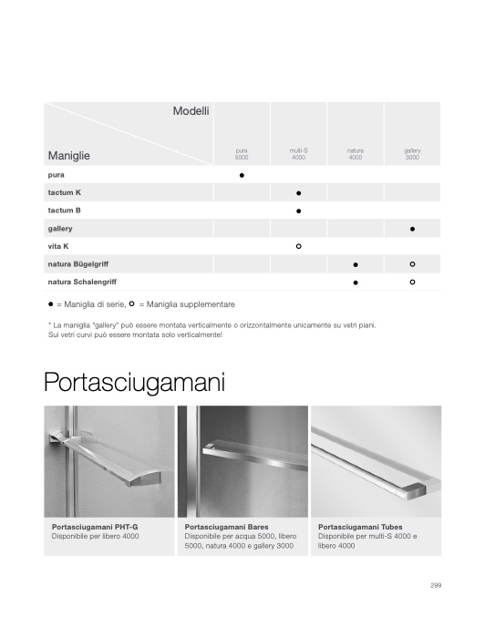* La maniglia “gallery” può essere montata verticalmente o orizzontalmente unicamente su vetri piani.