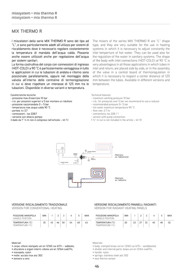 of the body with inlet connections (HOT-COLD) at 90 °C is