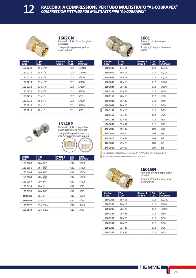 Da utilizzare obbligatoriamente con 1476/ Must to be used with 1476