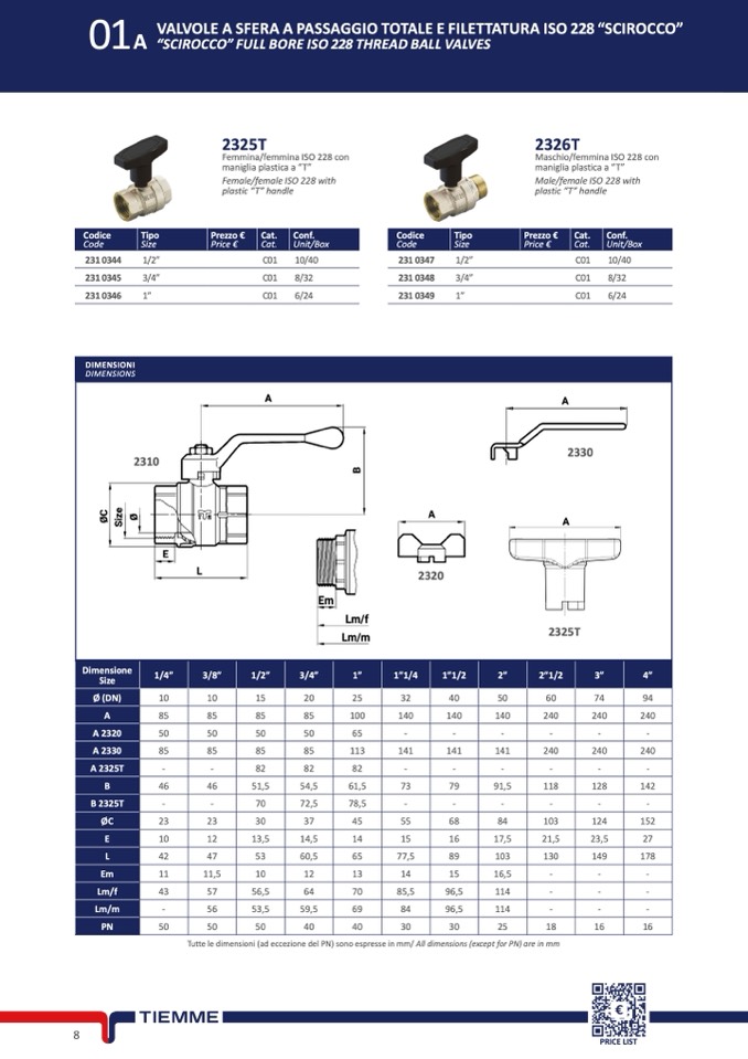 VALVOLE A SFERA A PASSAGGIO TOTALE E FILETTATURA ISO 228 “SCIROCCO