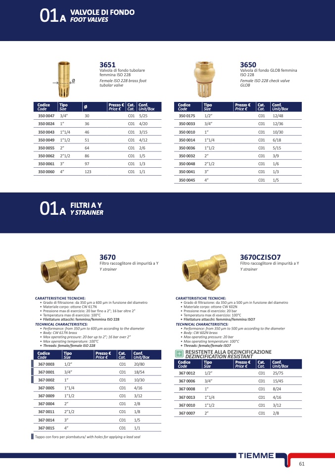 • Filettature attacchi: femmina/femmina ISO 228