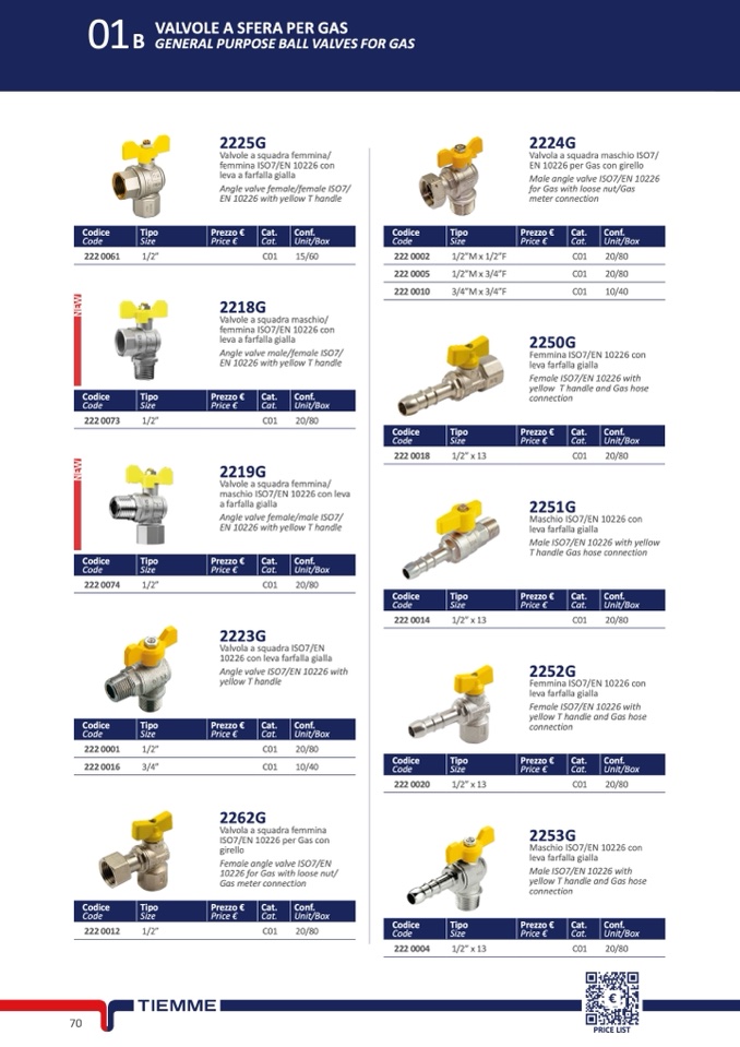 Valvole a squadra femmina