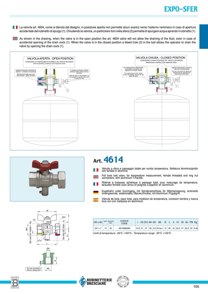 Limiti di temperatura: -20°C +100°C - Temperature range: -20°C +100°C.