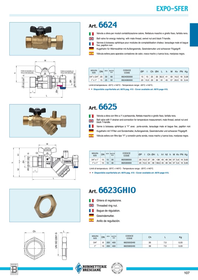 Limiti di temperatura: -20°C +140°C - Temperature range: -20°C +140°C