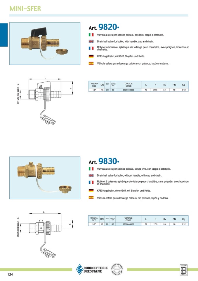 Robinet à boisseau sphérique de vidange pour chaudière, avec poignèe, bouchon e