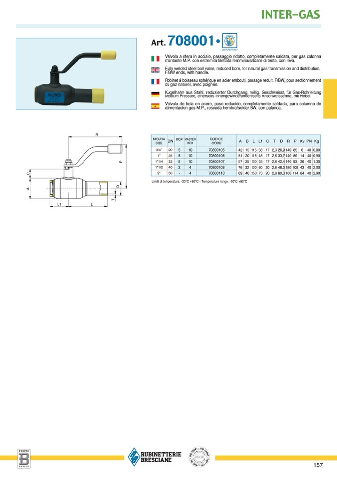Limiti di temperatura: -20°C +80°C - Temperature range: -20°C +80°