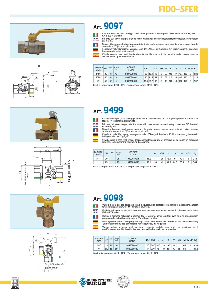 Limiti di temperatura: -20°C +60°C - Temperature range: -20°C +60°C.