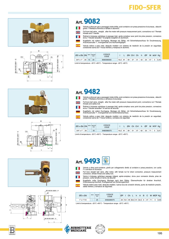 Limiti di temperatura: -20°C +60°C - Temperature range: -20°C +60°C.