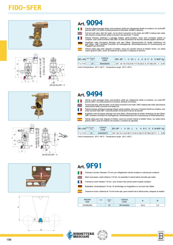 Limiti di temperatura: -20°C +60°C - Temperature range: -20°C +60°C.