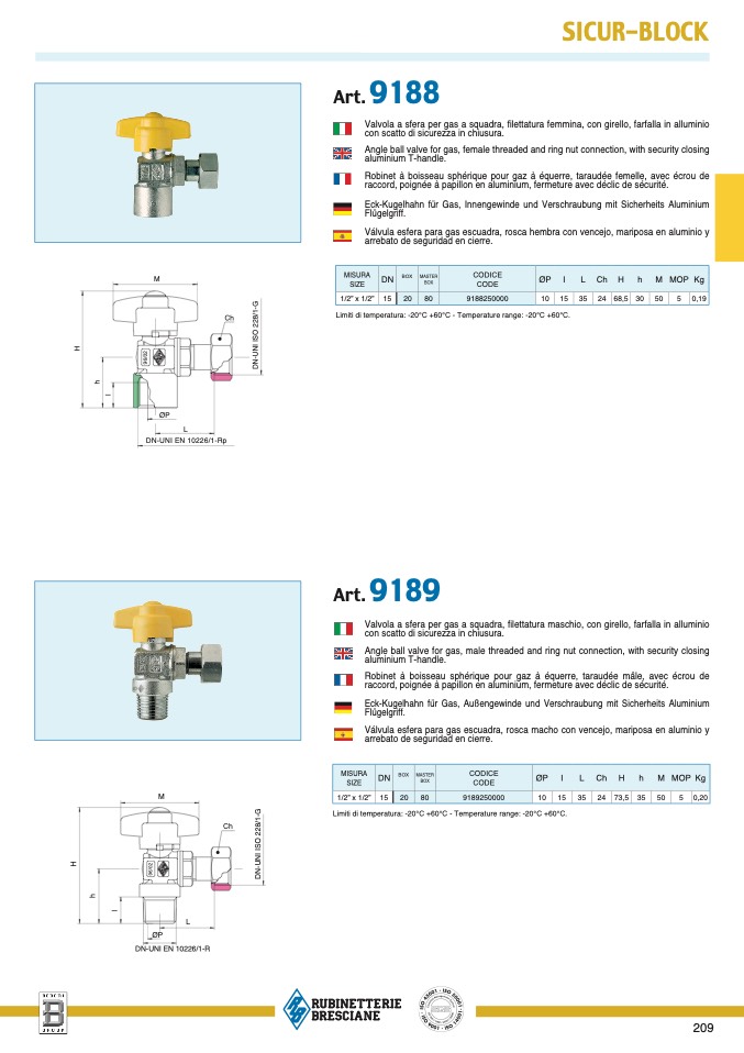 Limiti di temperatura: -20°C +60°C - Temperature range: -20°C +60°C.