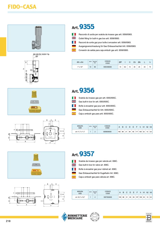 Boîte à encastrer gaz pour artt. 9355/935C.