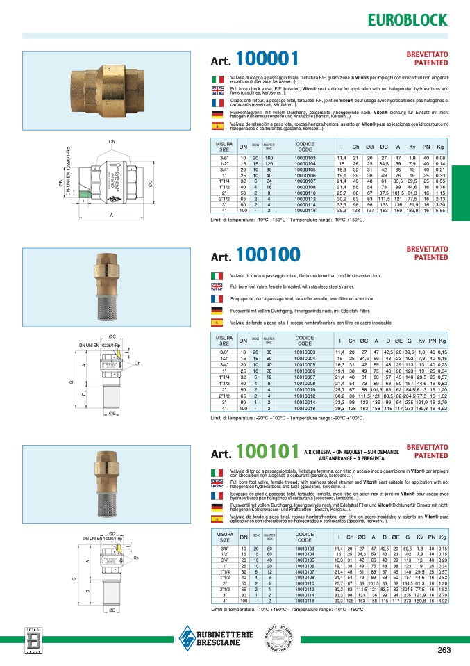 Limiti di temperatura: -20°C +100°C - Temperature range: -20°C +100°C