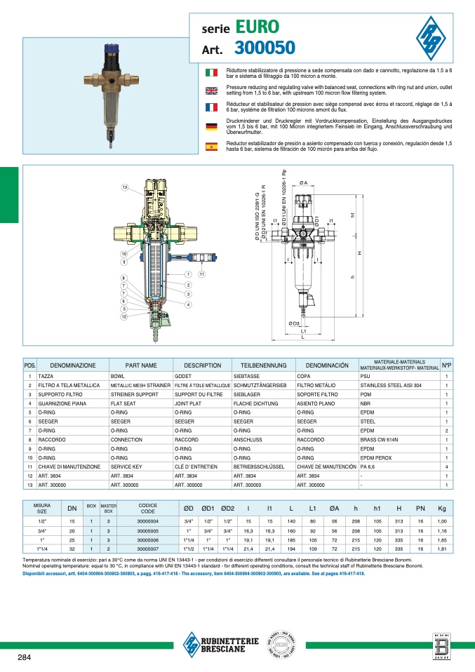 Nominal operating temperature: equal to 30 °C, in compliance with UNI EN 13443-1 standard - for different operating conditions, consult the technical staff of Rubinetterie Bresciane Bonomi