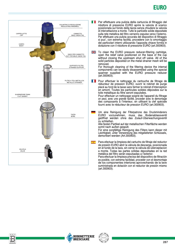 To clean the EURO pressure reducer-