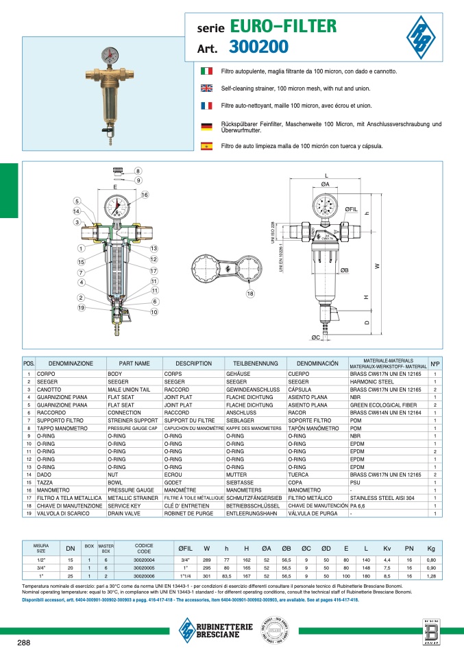 Nominal operating temperature: equal to 30°C, in compliance with UNI EN 13443-1 standard - for different operating conditions, consult the technical staff of Rubinetterie Bresciane Bonomi.