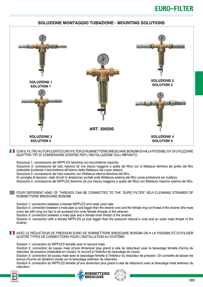 CON IL FILTRO AUTOPULENTE EURO FILTER DI RUBINETTERIE BRESCIANE BONOMI SI HA LA POSSIBILITA’ DI UTILIZZAR