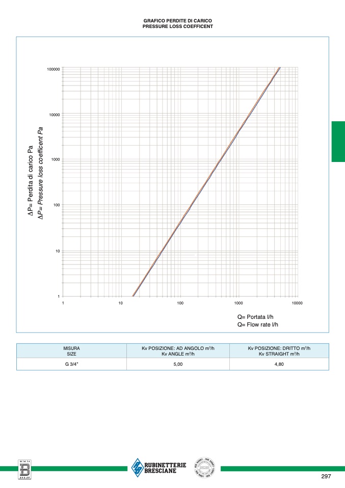 Kv POSIZIONE: DRITTO m3/h