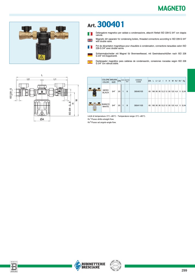 Desfangador magnètico para calderas de condensaciòn, conexiones roscadas segùn ISO 22