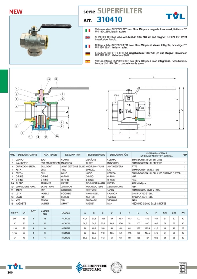 Valvola a sfera SUPERFILTER con filtro 500 µm e magnete incorporati, filettatura F/