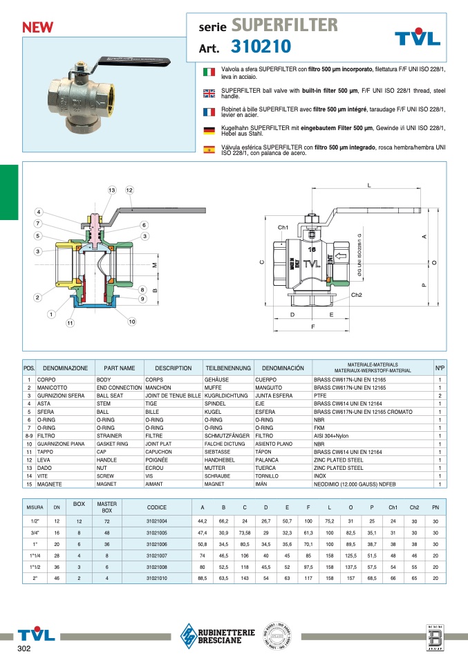 Kugelhahn SUPERFILTER mit eingebautem Filter 500 µm, Gewinde i/i UNI ISO 228/1
