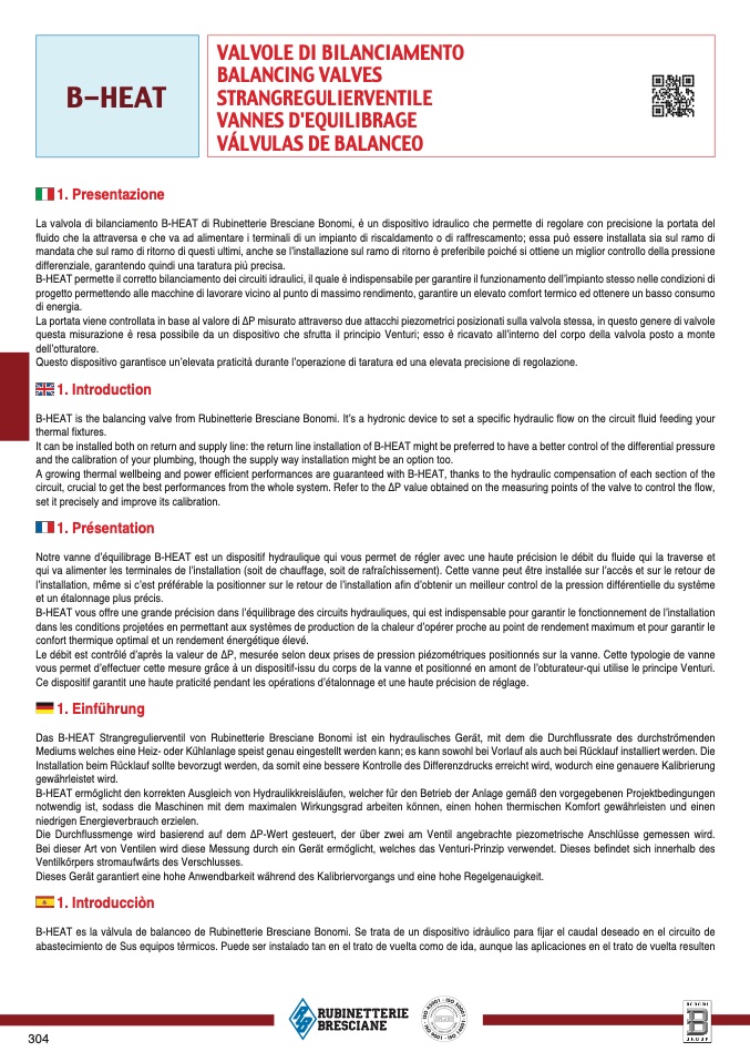 B-HEAT is the balancing valve from Rubinetterie Bresciane Bonomi. It’s a hydronic device to set a speci