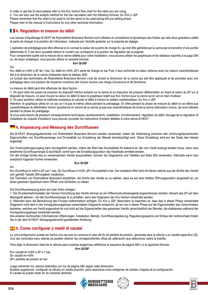 L’opération de préréglage peut être effectué si on connait la valeur de la perte de charge Kv, qui doit être générée par la vanne par la transition d’une porté