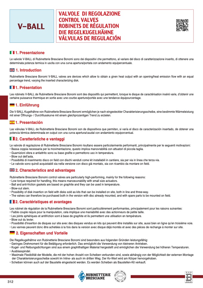 Las válvulas V-BALL de Rubinetterie Bresciane Bonomi son de dispositivos que permiten, si varía el disco de caracterización insertado, de obtener un