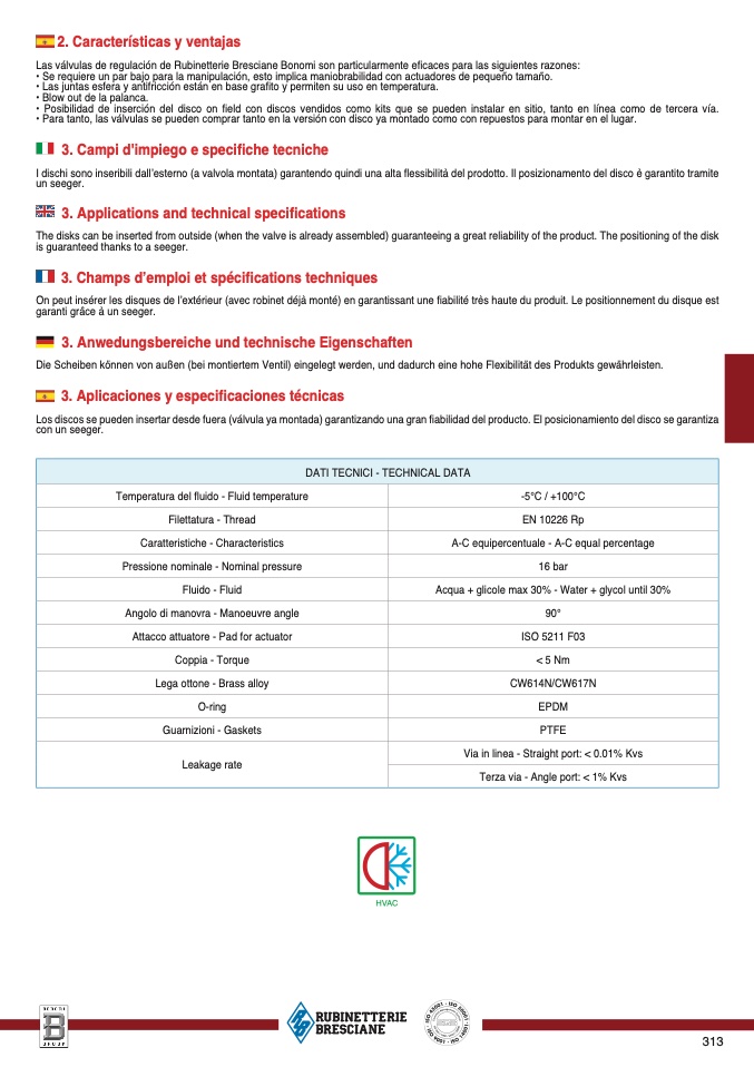 The disks can be inserted from outside (when the valve is already assembled) guaranteeing a great reliability of the product. The positioning of the dis