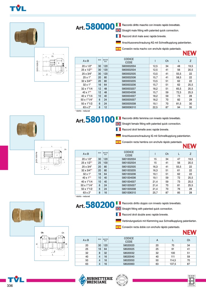 Raccordo diritto maschio con innesto rapido brevettato