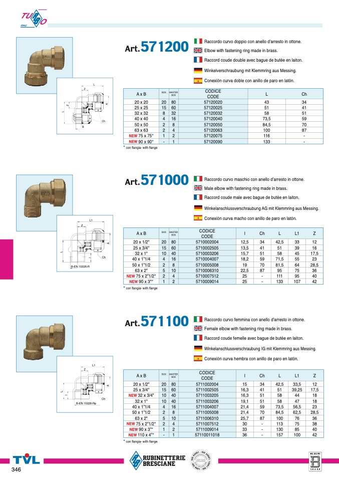 Elbow with fastening ring made in brass.