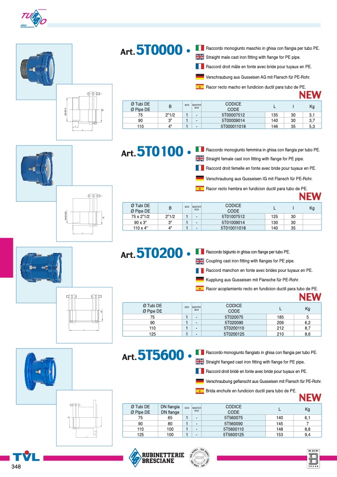 Racor acoplamiento recto en fundicion ductil para tubo de PE.