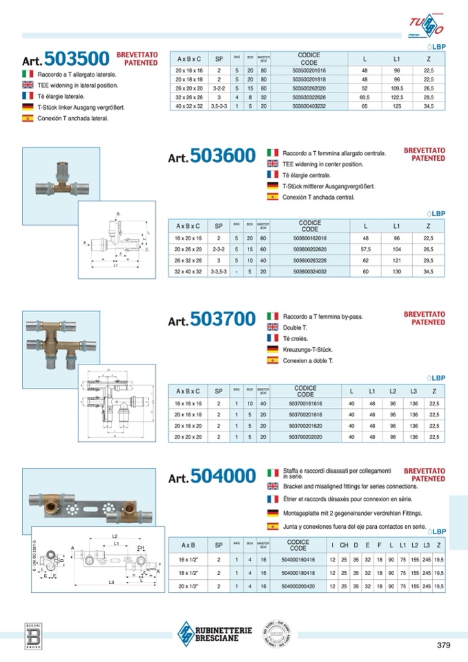 Raccordo a T femmina by-pass.