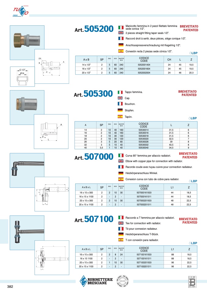 Curva 90° femmina per allaccio radiatori