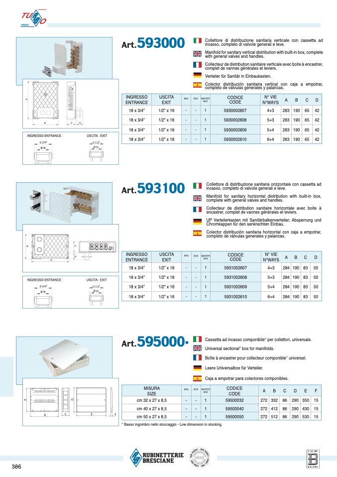 Manifold for sanitary vertical distribution with built-in box, complet