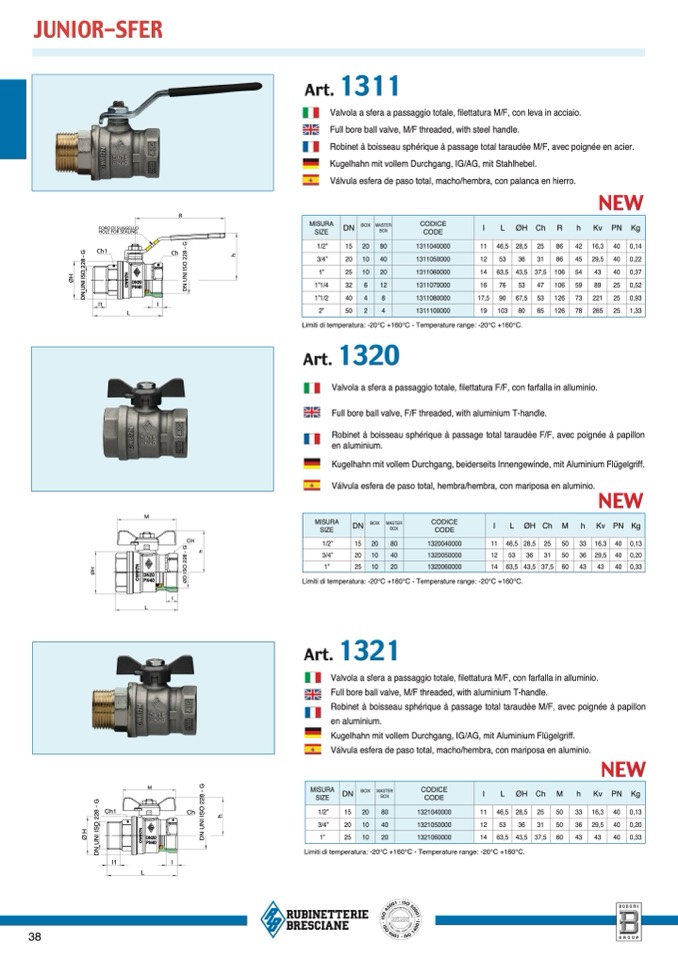 Limiti di temperatura: -20°C +160°C - Temperature range: -20°C +160°C.