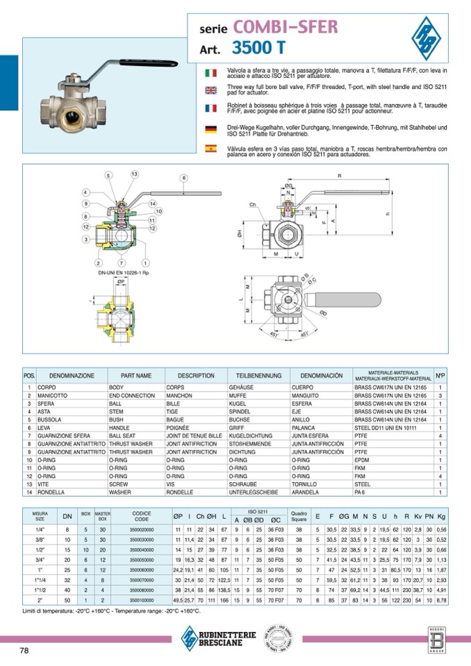 Limiti di temperatura: -20°C +160°C - Temperature range: -20°C +160°C