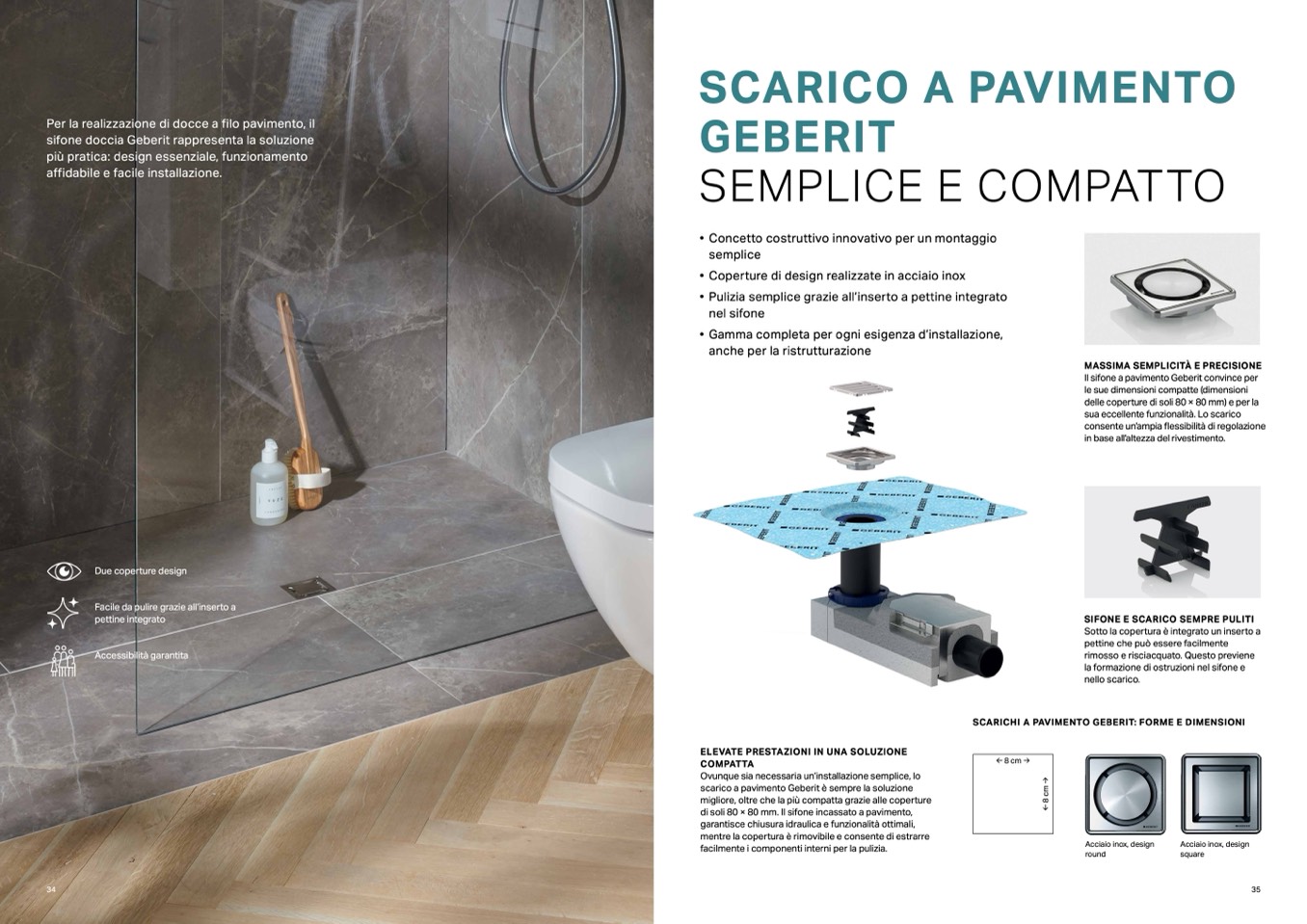 SCARICHI A PAVIMENTO GEBERIT: FORME E DIMENSIONI