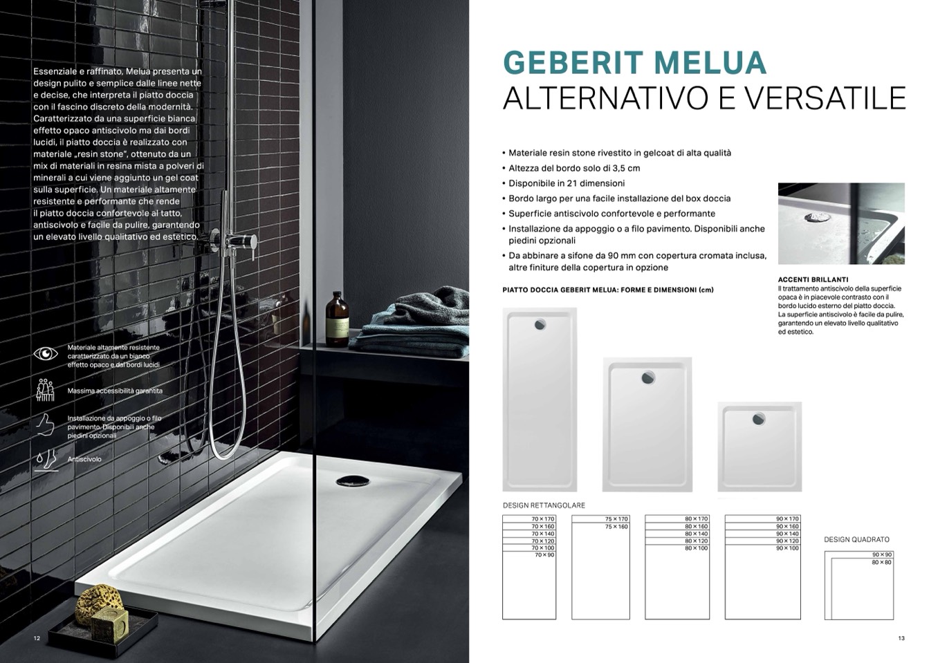PIATTO DOCCIA GEBERIT MELUA: FORME E DIMENSIONI (cm)