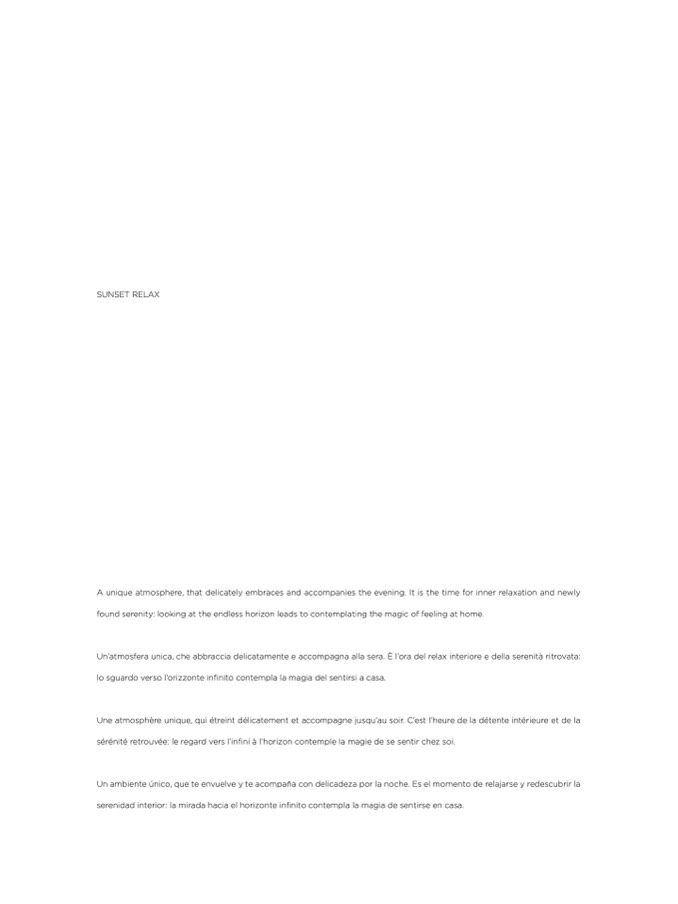 Un’atmosfera unica, che abbraccia delicatamente e accompagna alla sera. È l’ora del relax interiore e della serenità ritrovata: