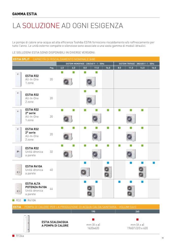 ESTIA POMPA DI CALORE PER LA PRODUZIONE DI ACQUA CALDA SANITARIA - VOLUMI (litri)