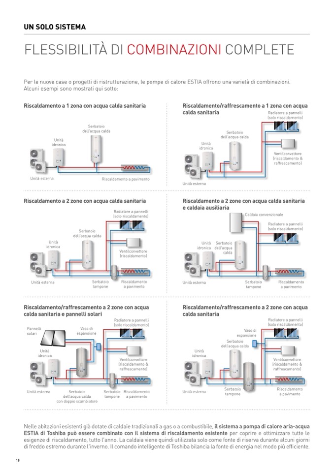 ESTIA di Toshiba può essere combinato con il sistema di riscaldamento esistente per coprire e ottimizzare tutte le