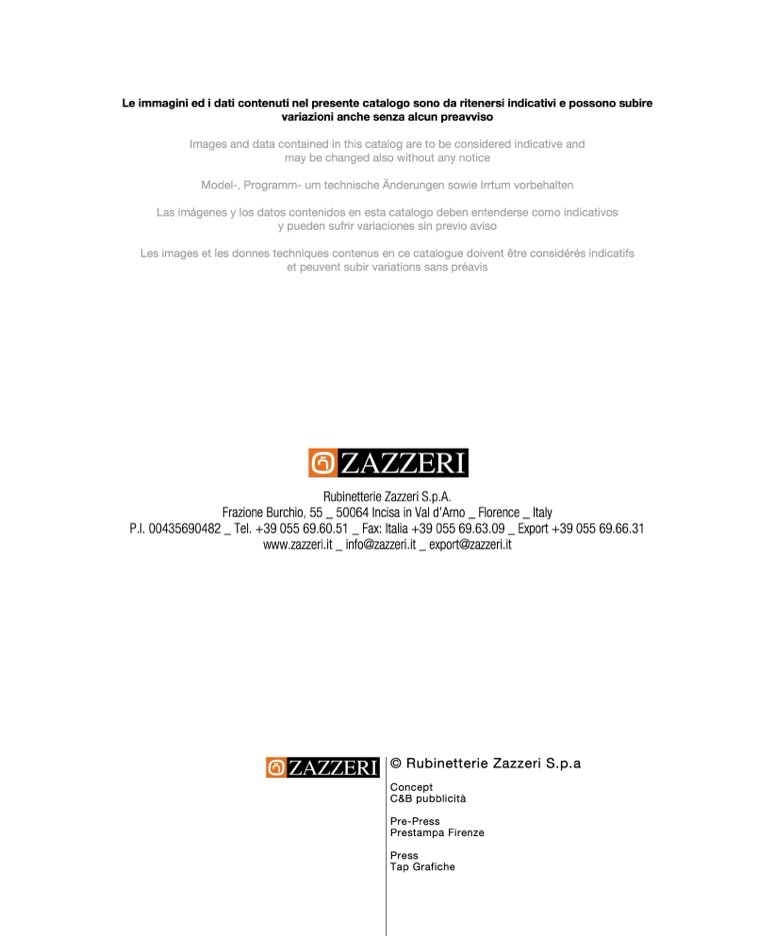 Le immagini ed i dati contenuti nel presente catalogo sono da ritenersi indicativi e possono subire