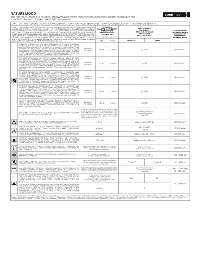 CARATTERISTICHE TECNICHE - TECHNICAL CHARACTERISTICS - CARACTERISTIQUES TECHNIQUES - TECHNISCHE EIGENSCHAFTEN - CARACTERÍSTICAS TÉCNICA
