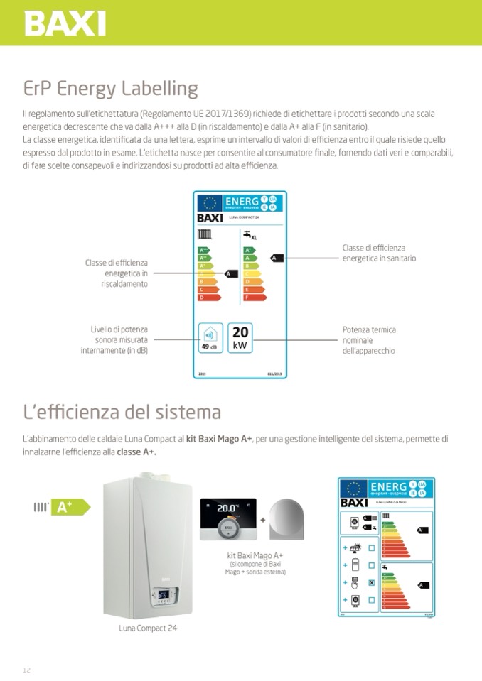 energetica decrescente che va dalla A+++ alla D (in riscaldamento) e dalla A+ alla F (in sanitario).